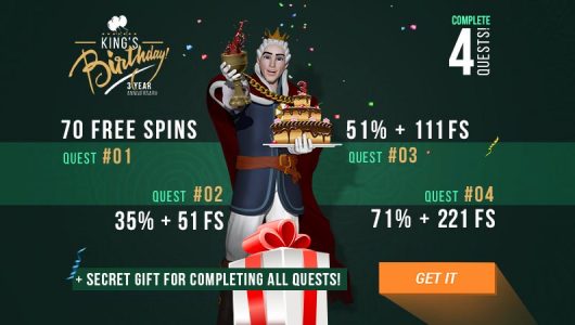 Ihmisen elämässä on kaksi suurta päivää – syntymäpäivä ja päivä, jolloin ymmärrämme miksi. Kuningas Billy kutsuu sinut juhlimaan kolmatta syntymäpäivää kanssaan. Lisäksi koska hän tiesi syntyneensä parantaaksesi yleistä hyvinvointiasi ja siten edistää onnellisuuttasi King Billy kasino julkaisi King Billyn hakupelin. Mene seikkailuun kuninkaasi kanssa ja löydä uusia tapoja kasvattaa pankkitilisi